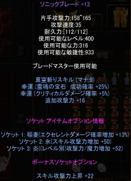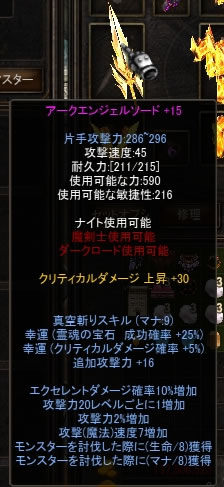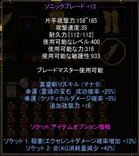 ただ、AAだと無限GBできずにガス欠します。ボス狩りではAGもマナもすぐ切れます・・・。狩りではコンボ専用武器という残念な仕様です。フェリア痛いので、マナから敏捷に200ふったからか、GB専用武器のソニックブレードだと次はマナ切れをおこすしまつ。こまった・・・。