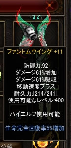 合成BOXSPで+15権利がでたら、AAAもう1本目挑戦しようかと思いましたが、PvPで使えるのは1本なので(もう片方は相変わらずモニスタw)今回は1本完成で打ち止めにします。1Lv権利か+15権利でも超越のマント+13に使う予定です。+15権利なら+15に、1Lv権利なら中途半端ですが、+14に。GLのマントはダメ増加がそのまま属性ダメに反映されるようなので、羽強化に比例して強くなります。