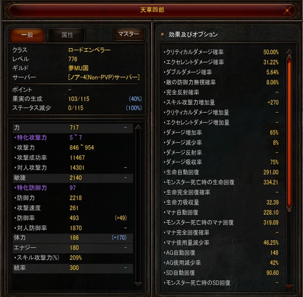 敏捷を1664から2140まであげました。統率300はクリティカルプラス要件なので落とせず。力717は新スキル要件です。エナジーは60の倍数。エナ初期だとマナ切れ、AG切れが激しいので180は残して調整してみます。